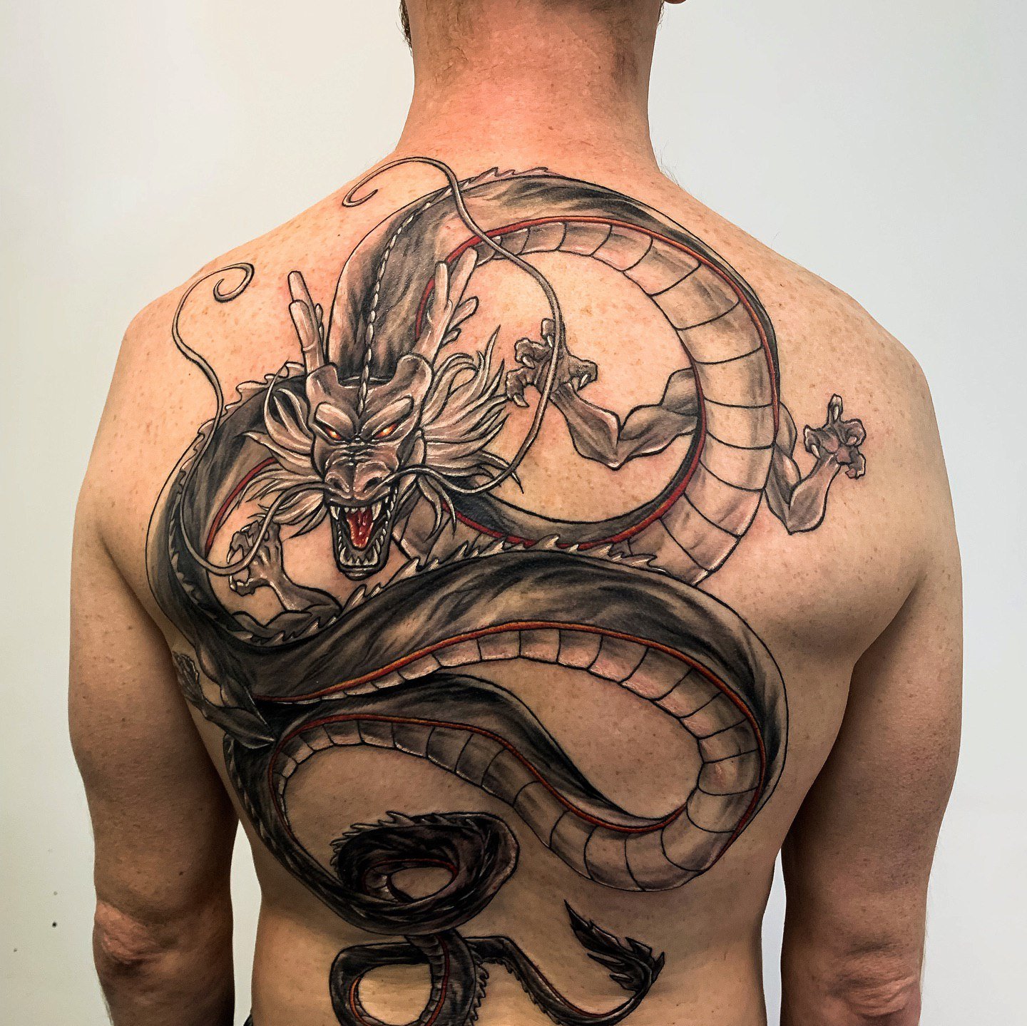 Tatuajele masculine pe spate sunt adesea caracterizate prin robustețe și amploare.