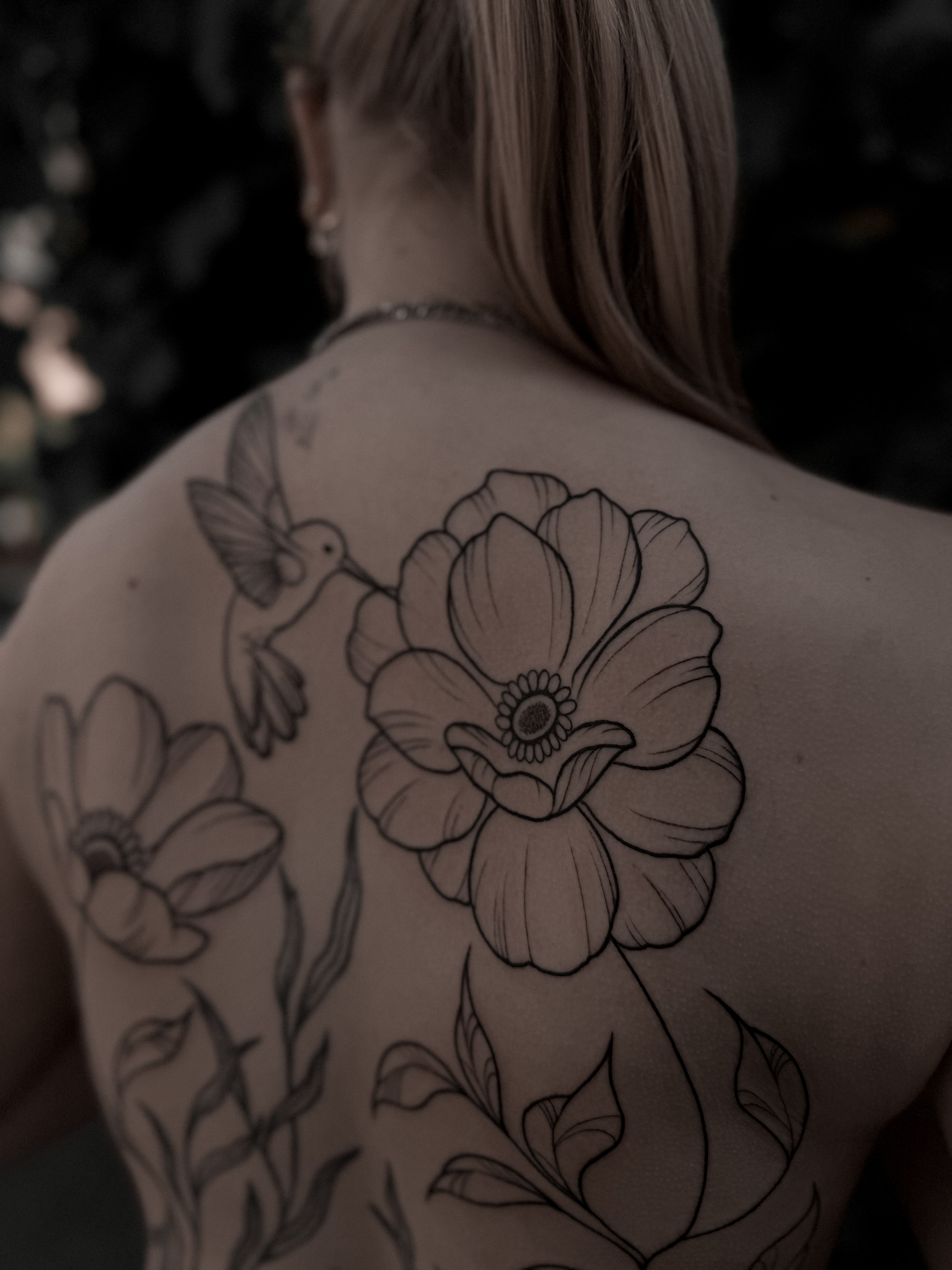 Tatuajele feminine pe spate sunt adesea caracterizate prin eleganță și detalii minuțioase.