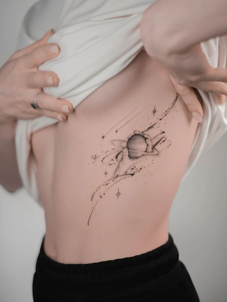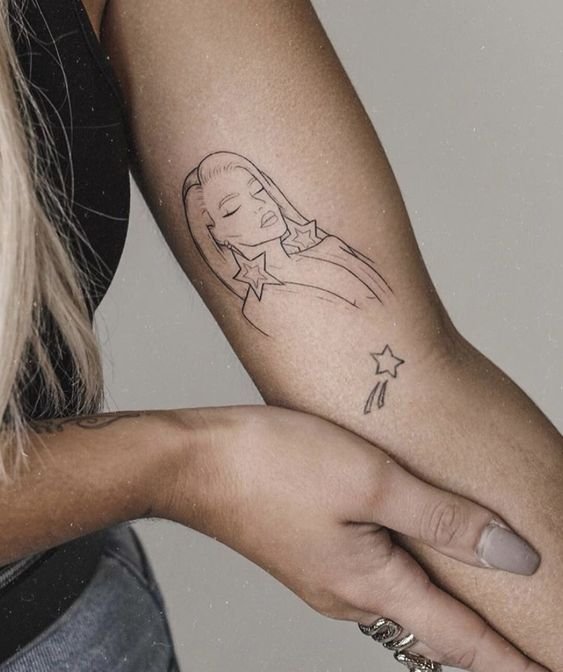 - Simboluri astronomice: Imagini de stele, constelații sau planete în stil Fine Line sunt alese frecvent de cei pasionați de cosmos sau astrologie. Aceste tatuaje adaugă o notă subtilă de simbolism și creează un sentiment de mister.