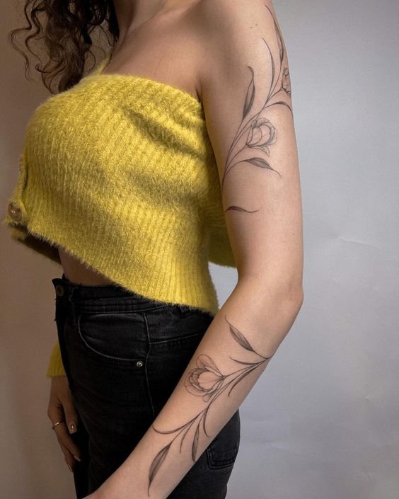 - Flori și plante: Imagini delicate de flori, cum ar fi trandafiri, crini sau ramuri, simbolizează frumusețea, rafinamentul și armonia cu natura. Aceste tatuaje sunt ideale pentru cei care doresc să adauge o notă de delicatețe și romantism aspectului lor.