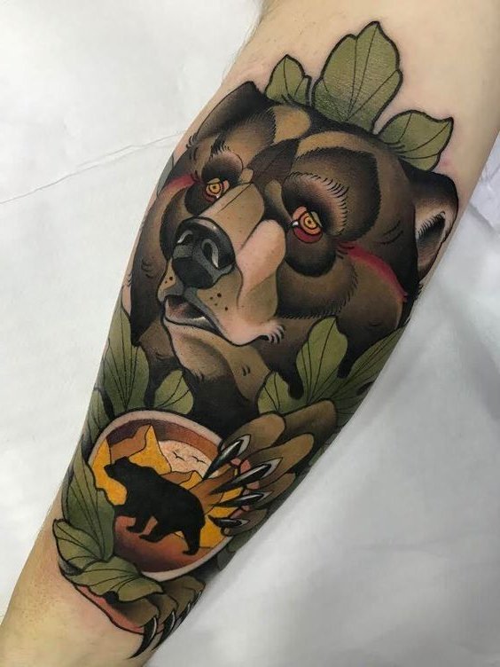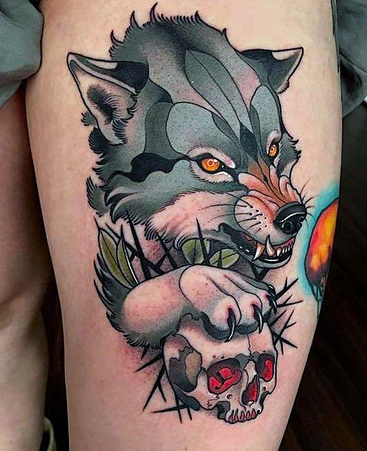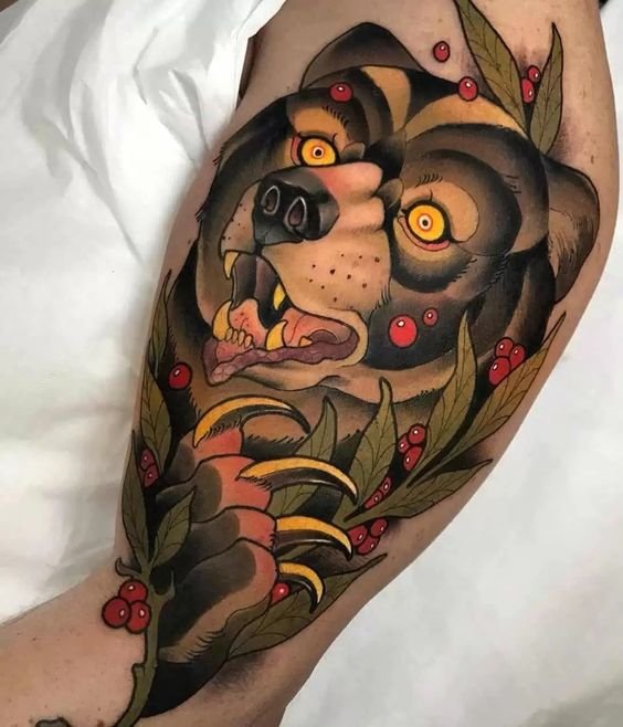 Tatuajele masculine în stil Neo Traditional includ deseori imagini puternice și simboluri de forță: