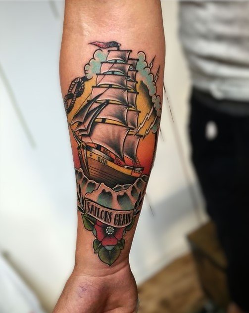Acest stil, cunoscut și sub numele de "old school", se caracterizează prin contururi clare, o paletă limitată de culori și teme simple. Stilul tradițional include adesea simboluri ale marinarilor, cum ar fi ancore, rândunele, inimi cu nume și trandafiri.