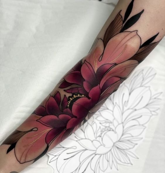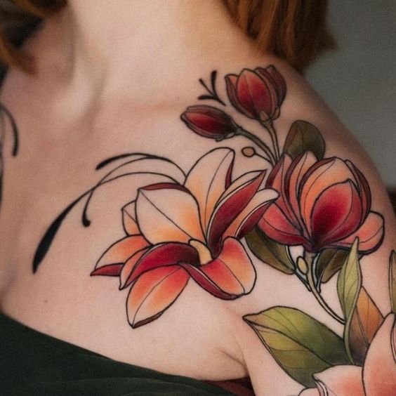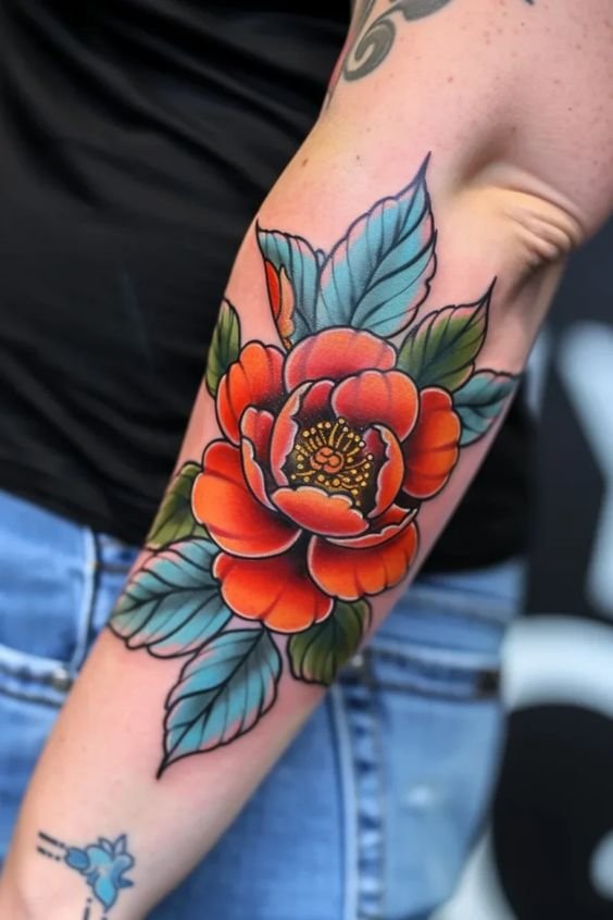 Tatuajele feminine în stil Neo Traditional pot include elemente mai rafinate și elegante: