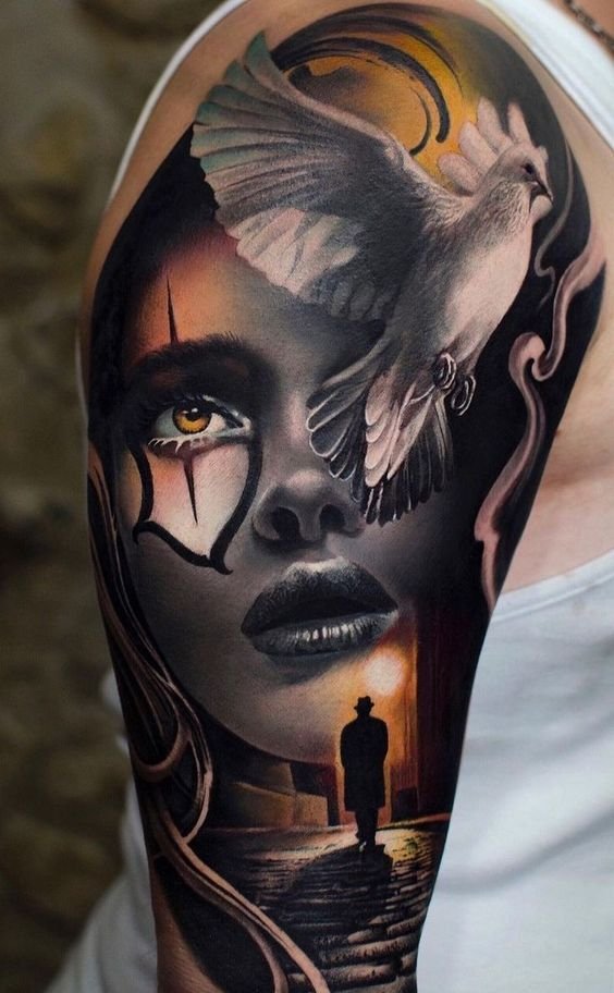 - Umărul: Un loc tradițional pentru tatuaje, umărul este perfect pentru designuri rotunde sau ovale, cum ar fi fețe de animale sau compoziții florale. Tatuajele pe umăr pot fi ușor acoperite cu haine, dar pot fi și expuse în timpul sezonului cald.