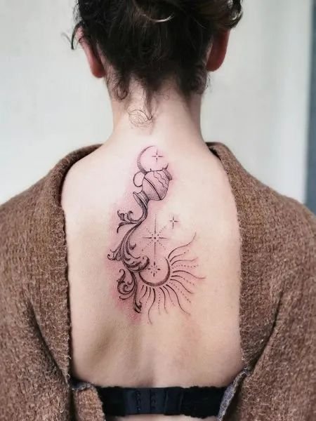 Dacă optați pentru un design mai complex, cum ar fi figura Purtătorului de Apă sau o compoziție abstractă, luați în considerare zone mai mari, precum spatele, umărul sau coapsa. Aceste spații permit o mai bună detaliere și o integrare armonioasă a elementelor vizuale.