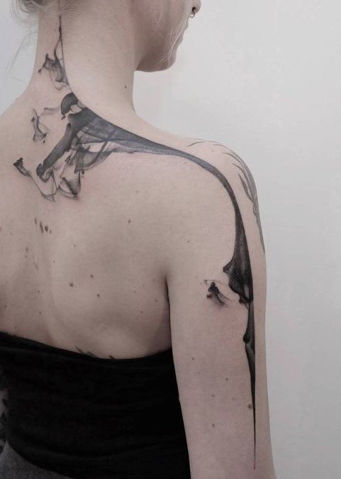 - Acuarelă: Tatuajele în stil acuarelă folosesc culori moi și estompate, creând un efect similar cu picturile în acuarelă. Acest stil este perfect pentru lucrări abstracte, deoarece permite experimentarea cu culorile și tranzițiile lor.