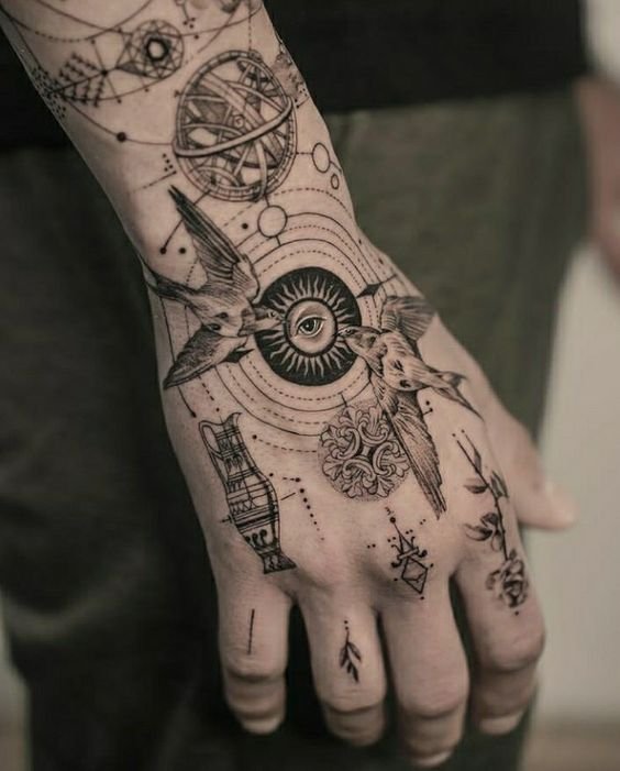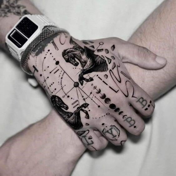 - Modele abstracte și geometrice: Modelele geometrice complexe sau abstracte sunt, de asemenea, populare ca tatuaje pe pumn, deoarece adaugă un interes vizual și pot simboliza concepte legate de echilibru, armonie și eternitate.