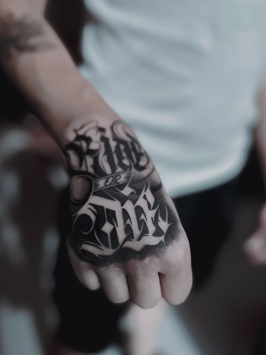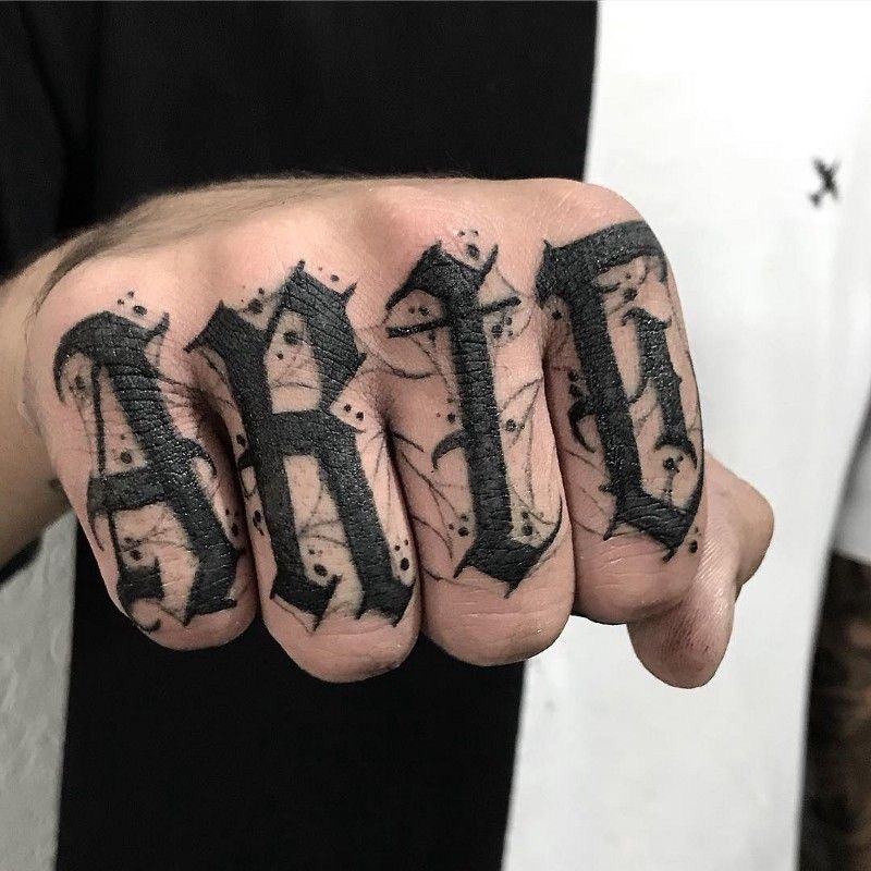 - Cuvinte și fraze: Fraze scurte și concise, cum ar fi "Faith", "Honor", "Power", "Freedom", pot fi tatuate pe degete pentru a aminti constant de principalele principii de viață. Uneori se folosesc și fraze mai lungi, împărțite între mai multe degete.