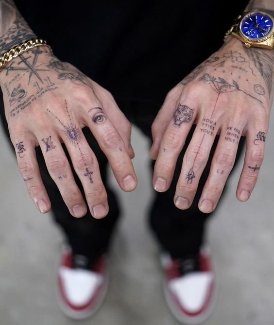 Tatuajele pe degete pentru bărbați exprimă adesea masculinitatea, puterea, precum și convingerile sau principiile de viață personale.