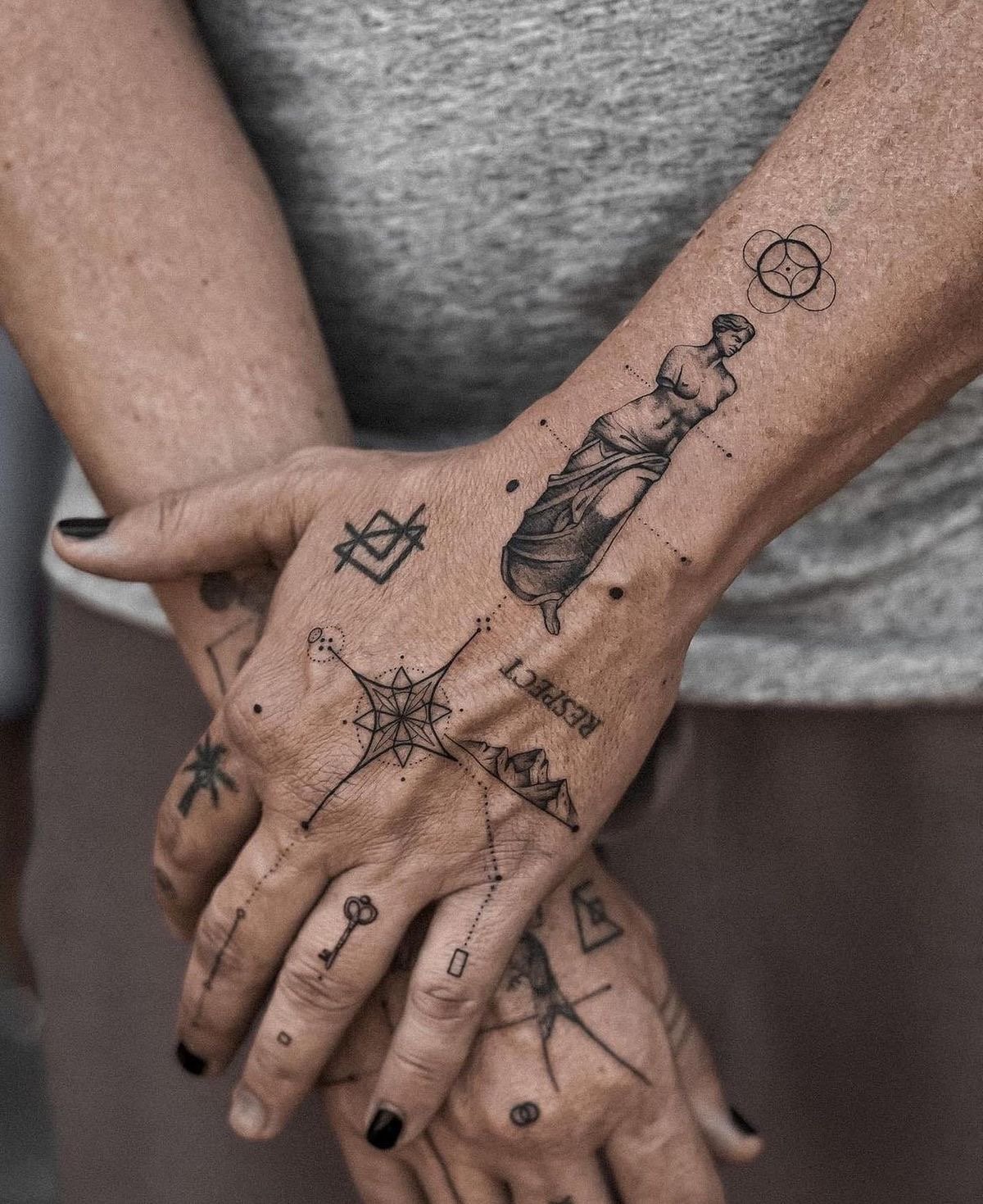 În plus, dimensiunea degetelor limitează complexitatea desenului. Tatuajele pe această parte a corpului sunt de obicei minimaliste și simple, ceea ce le face potrivite pentru simboluri, litere sau mici figuri geometrice.