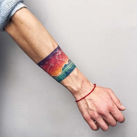 Un tatuaj-brățară poate fi amplasat pe încheietura mâinii, antebraț, biceps sau chiar pe gleznă, făcându-l o opțiune universală pentru ambele sexe.