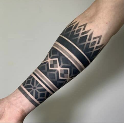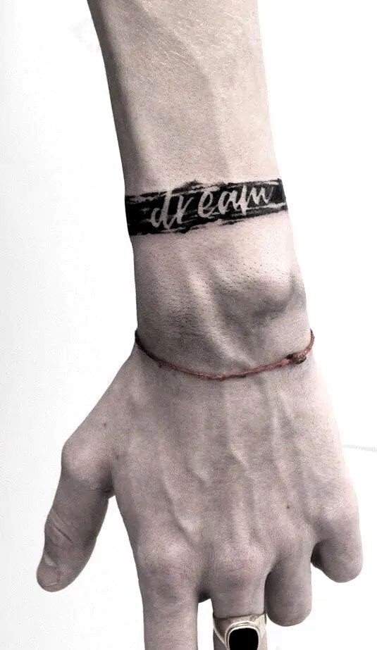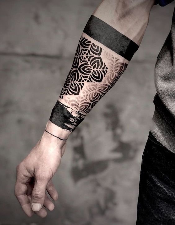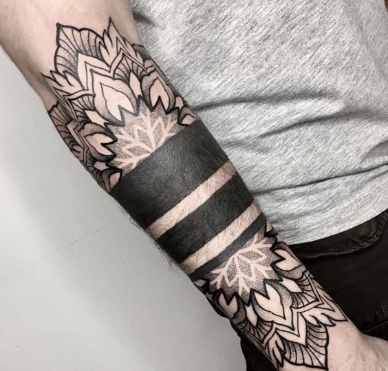 Bărbații adesea preferă tatuaje-brățară care simbolizează forța, masculinitatea și hotărârea.
