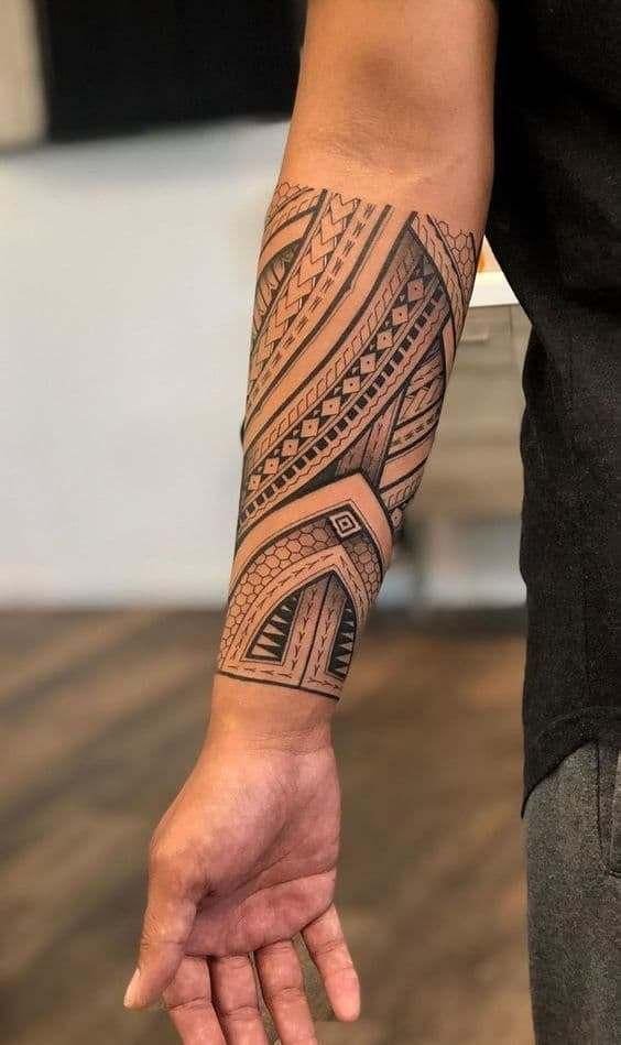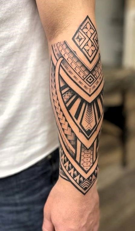 - Tatuaje polineziene. Modele complexe care povestesc istoria vieții unei persoane, realizările și trăsăturile sale.