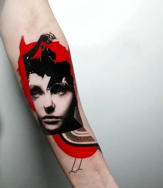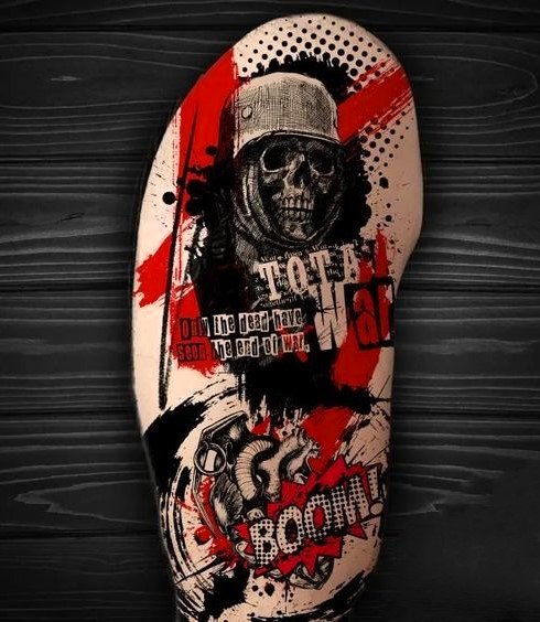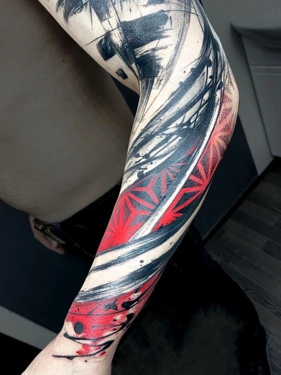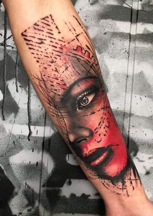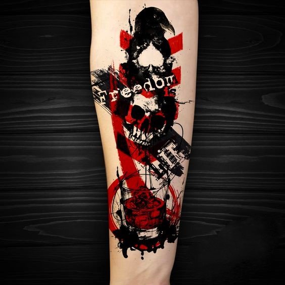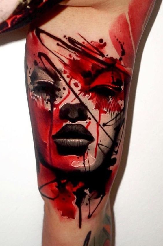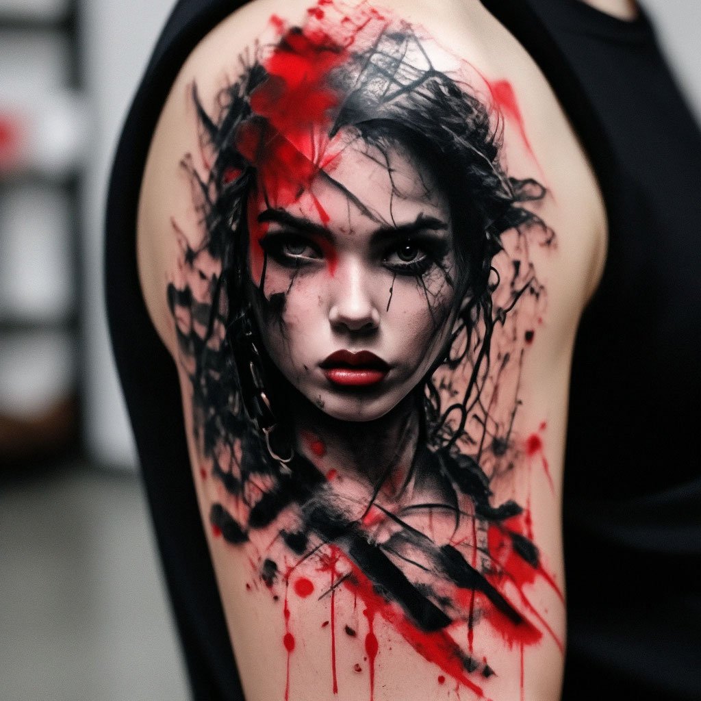 Trash polka este un stil îndrăzneț și dinamic de tatuaj, care se distinge prin motivele sale expresive negru-roșii și designul agresiv.
