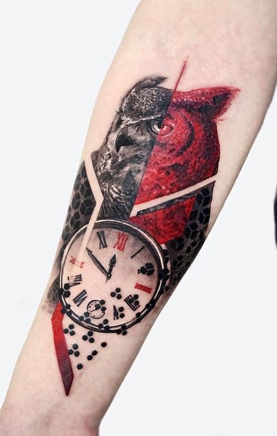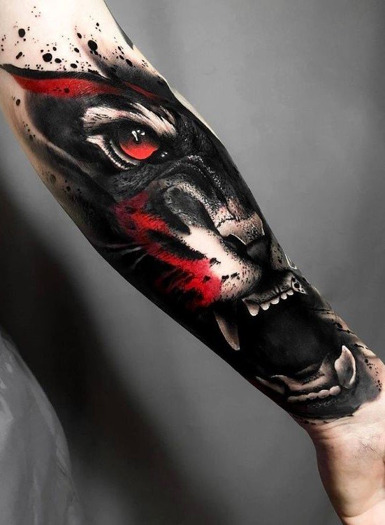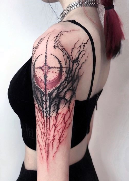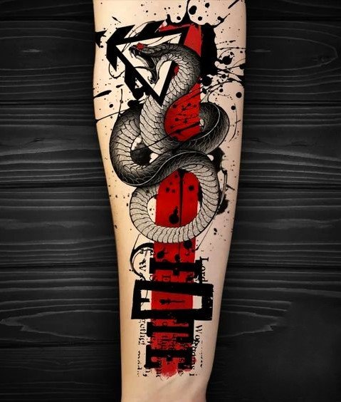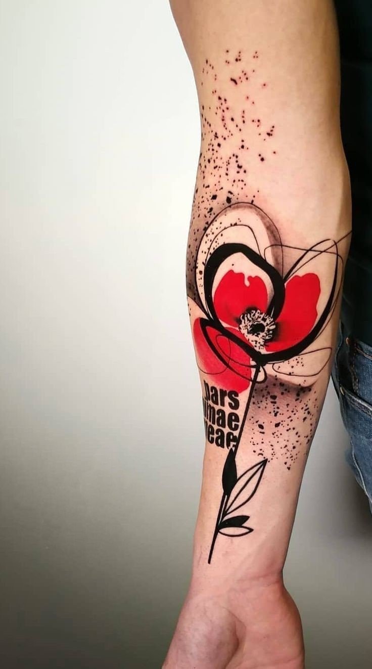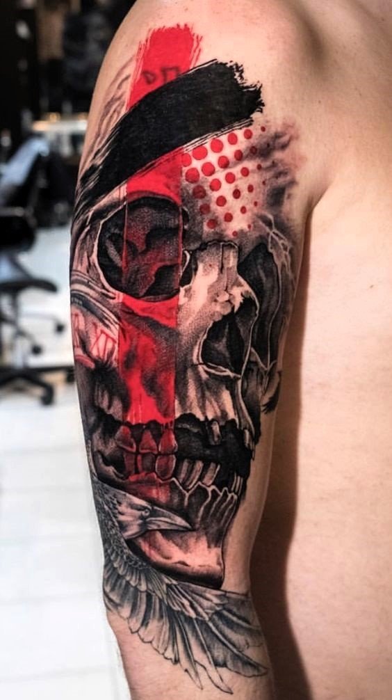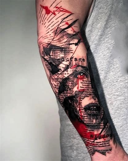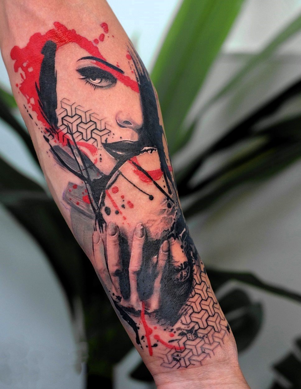 Trash polka este un stil îndrăzneț și dinamic de tatuaj, care se distinge prin motivele sale expresive negru-roșii și designul agresiv.