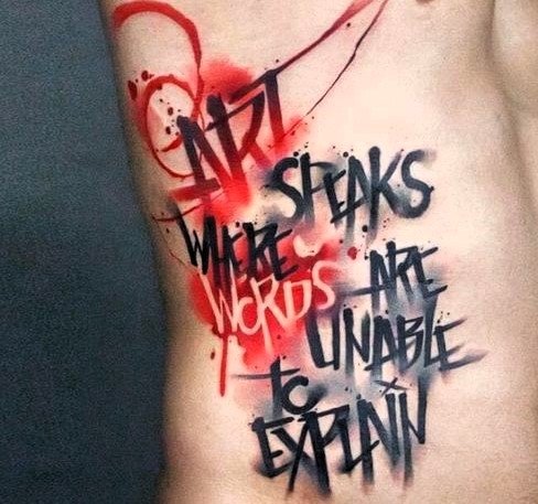 - Imagini simbolice: tatuaje care reflectă convingeri personale sau comentarii sociale, adesea folosind imagini provocatoare sau puternice. Elemente care reflectă afilierea culturală sau evenimentele istorice, îmbogățite cu semnificații personale.