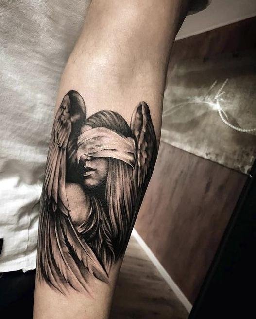 - Compoziții Scenice: Imagini ale îngerilor cu aripile desfăcute, zburând pe cer sau stând pe nori. Aceste tatuaje pot include multe detalii și simboluri, creând o imagine completă.