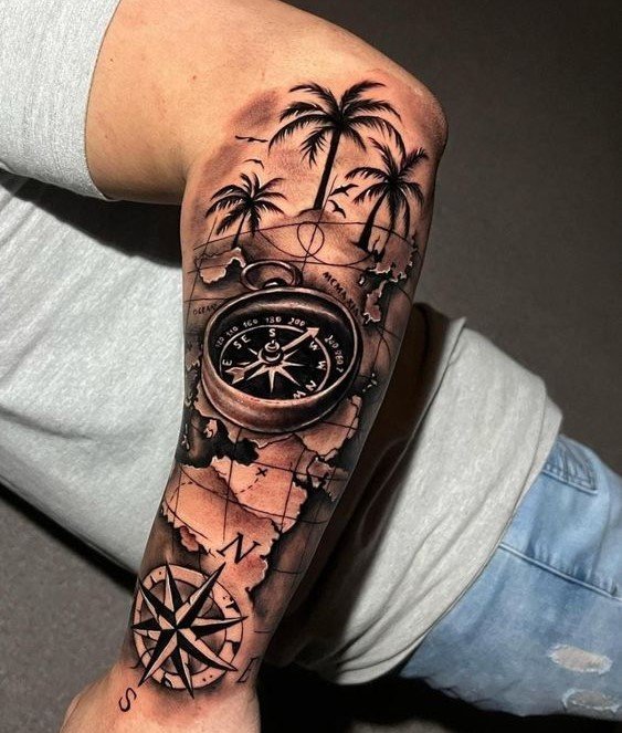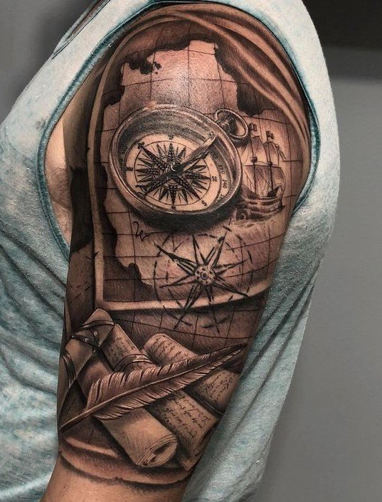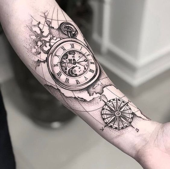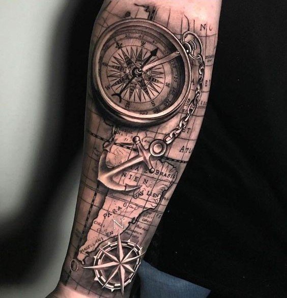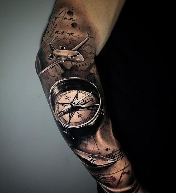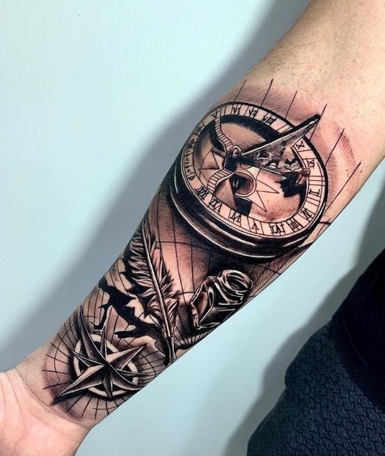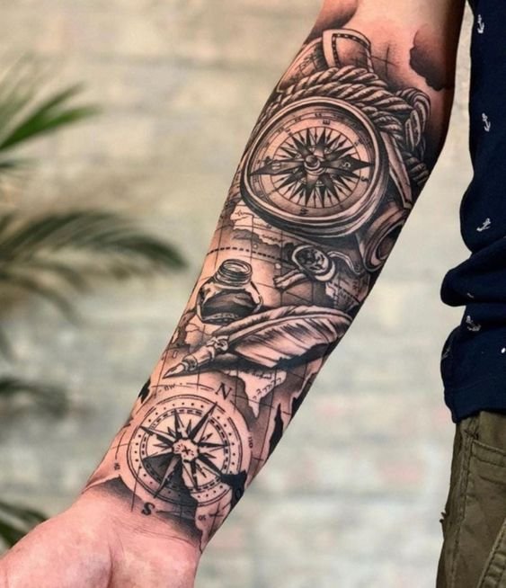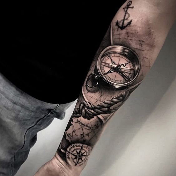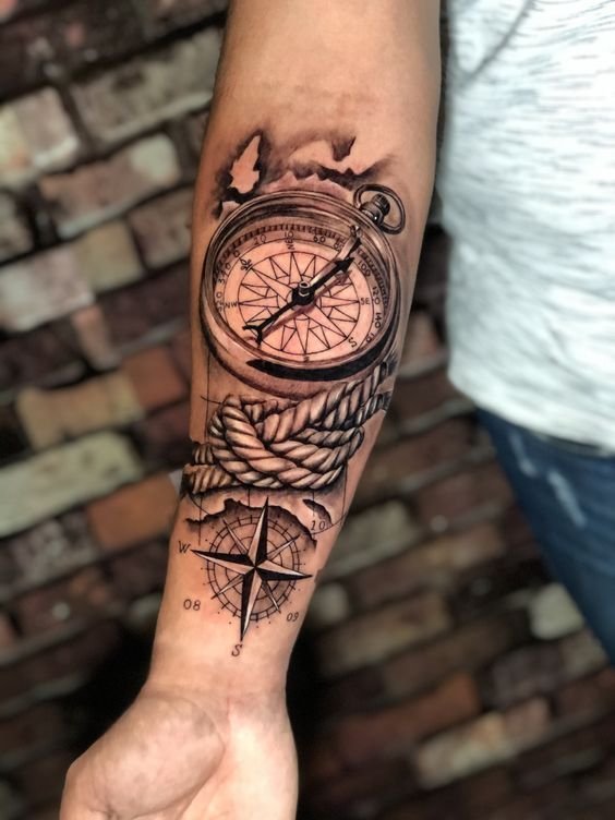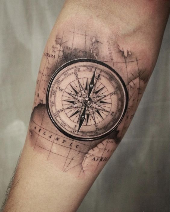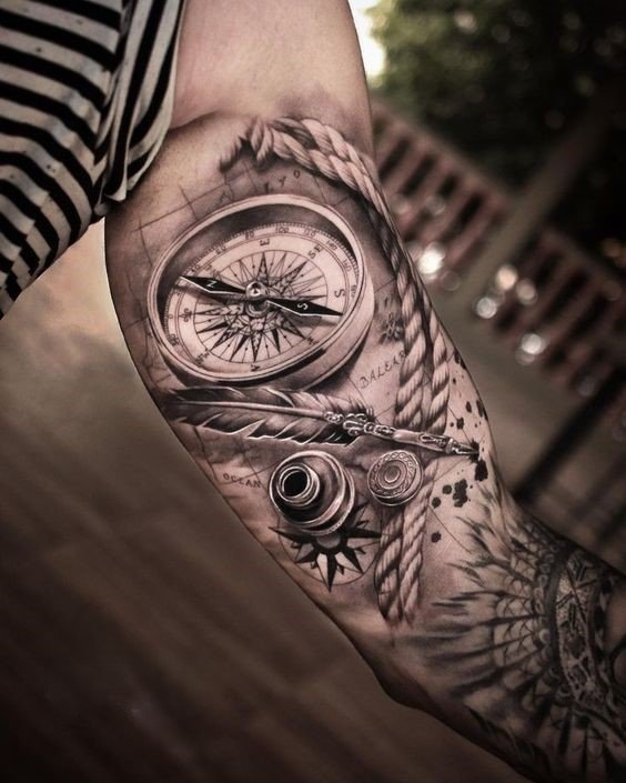 Tatuajul cu busolă va arăta impresionant pe aproape orice parte a corpului.