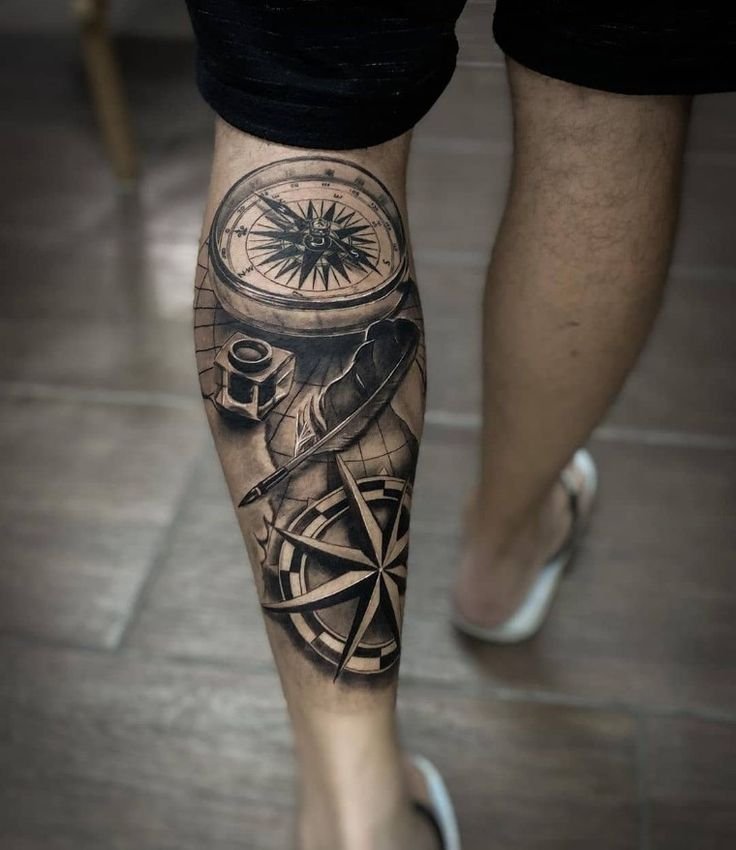 - Picior: O busolă pe coapsă sau gambă nu este doar un decor, ci un adevărat accent care subliniază încrederea și hotărârea ta.