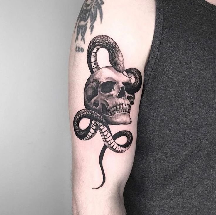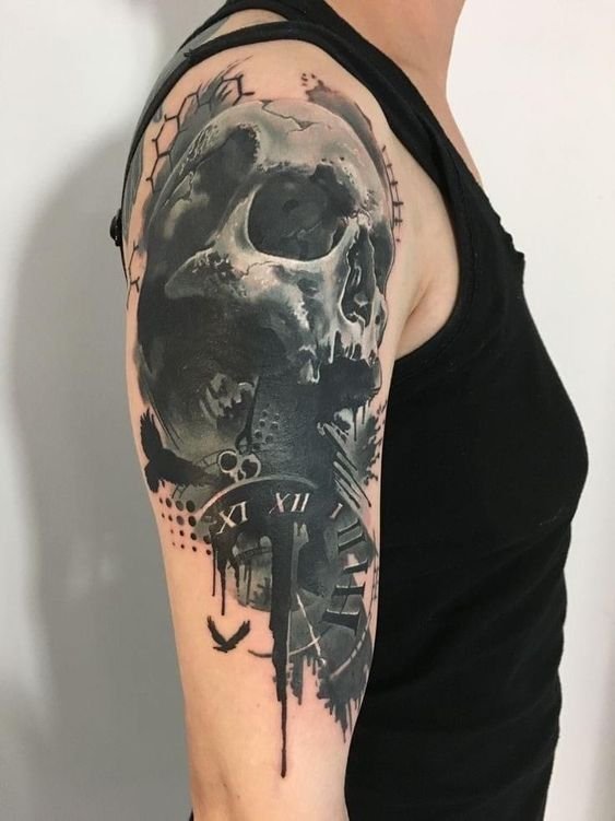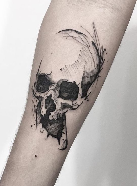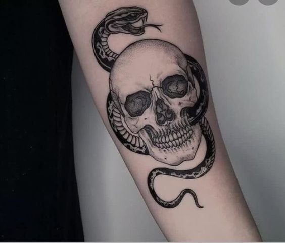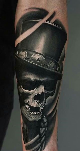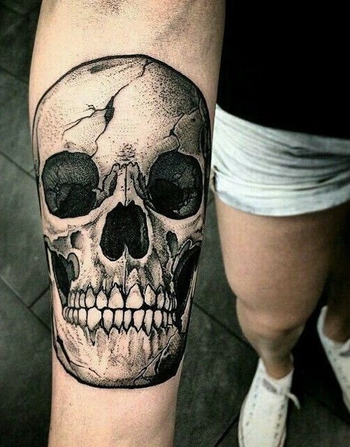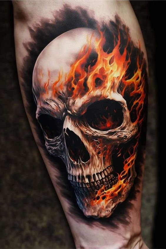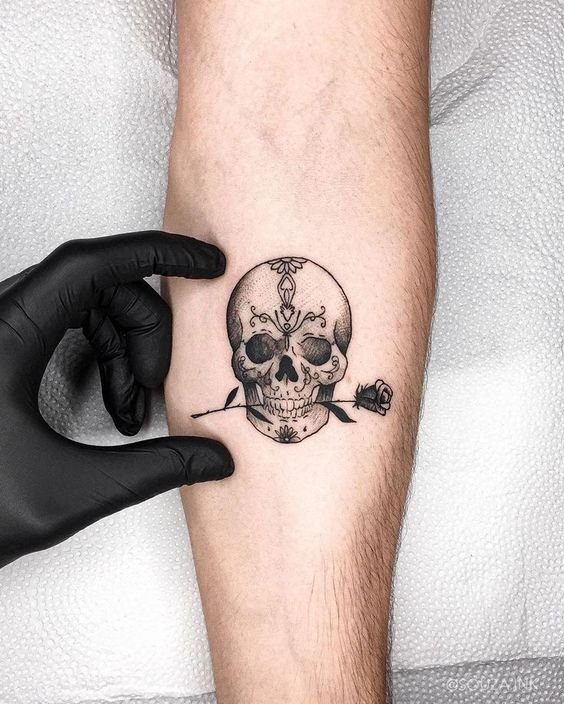 Tatuajul cu craniu este adesea asociat cu concepte precum moartea, pericolul și efemeritatea vieții.
