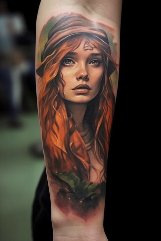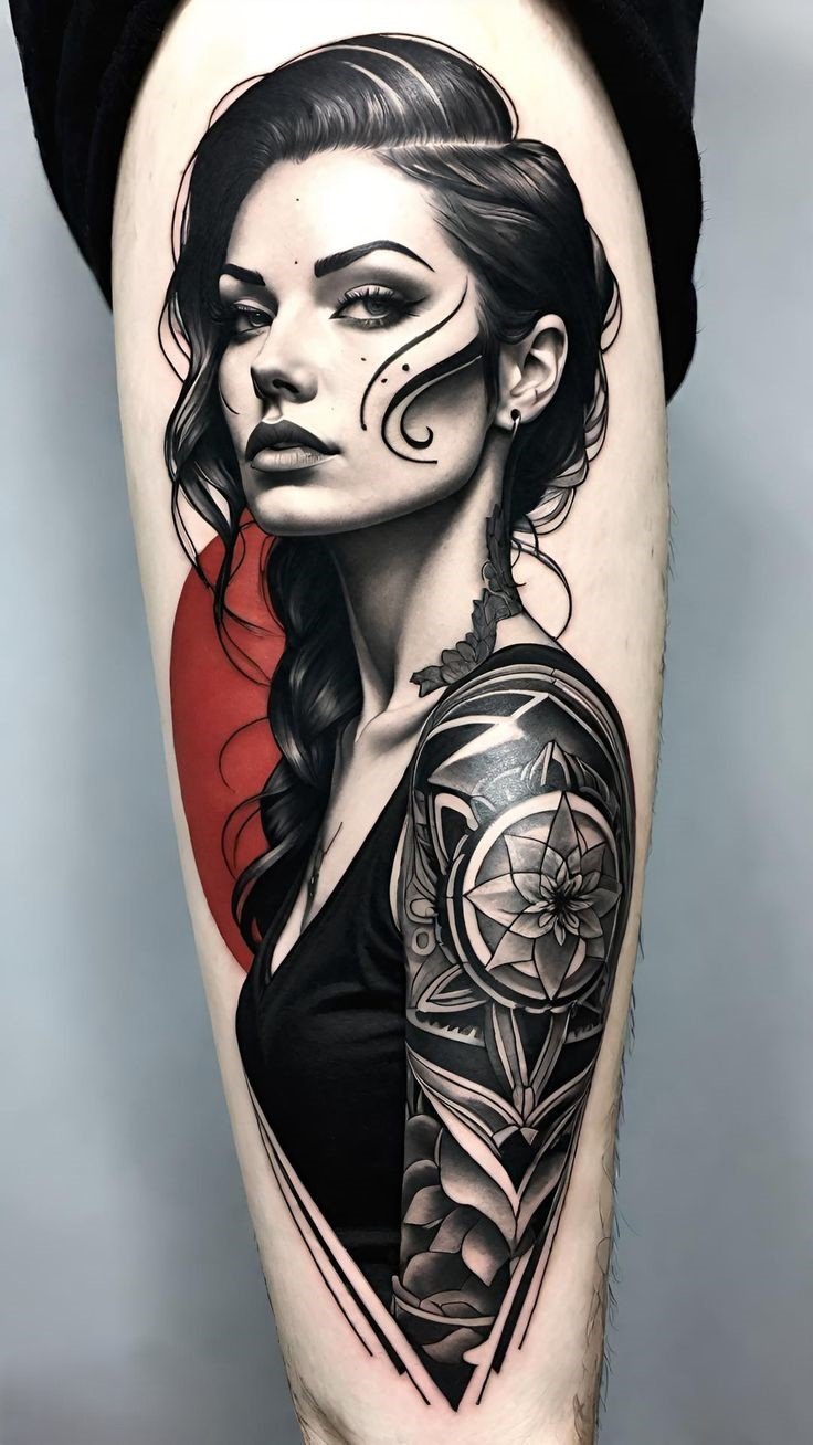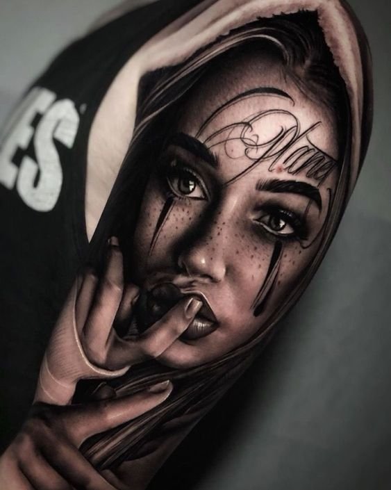 - Brațele și antebrațele sunt locuri excelente pentru un tatuaj dama, mai ales dacă imaginea dorește să fie la vedere. În aceste locuri se pot plasa portrete detaliate, care redau subtilitățile chipului feminin, cum ar fi zâmbetul misterios, ochii expresivi sau trăsăturile delicate. Pieptul este, de asemenea, un loc popular, unde imaginea unei femei arată armonios și atrăgător.