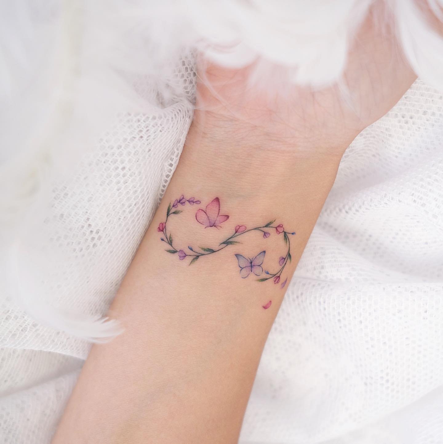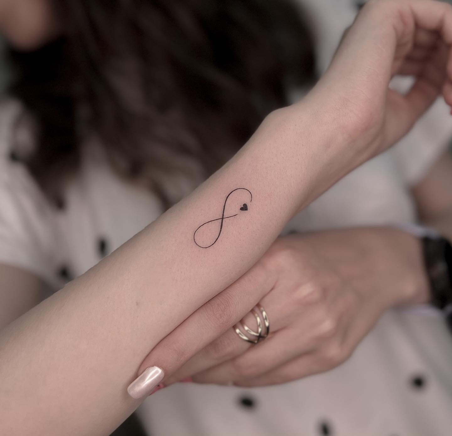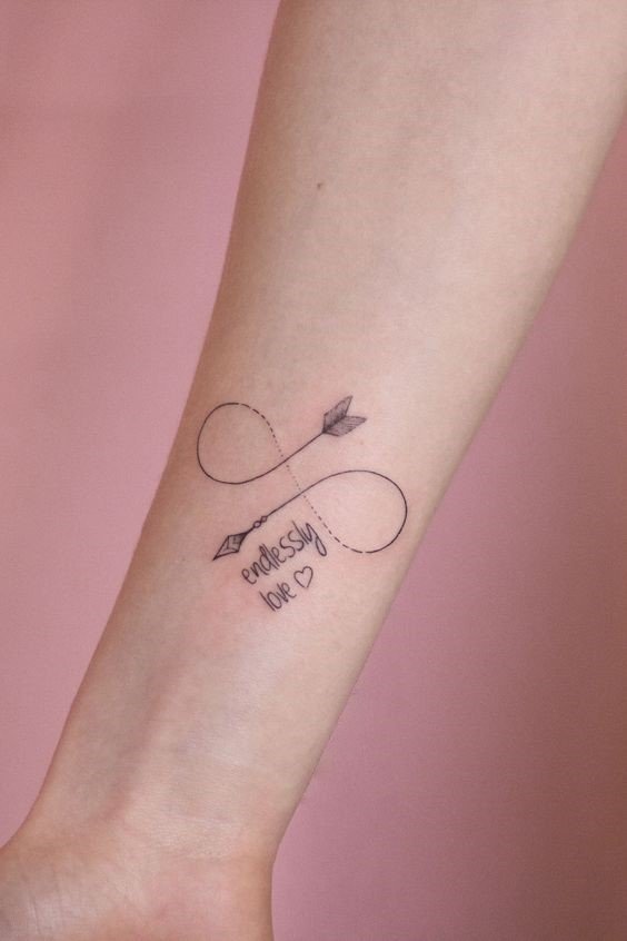 - Tatuajele de cuplu cu semnul infinitului simbolizează o legătură indestructibilă și sentimente eterne între îndrăgostiți sau cei mai buni prieteni. Ele devin un simbol expresiv al unității, suportului și înțelegerii reciproce, subliniind conexiunea specială dintre două persoane. Aceste tatuaje pot fi fie o reflectare în oglindă una a celeilalte, fie pot completa una pe cealaltă, creând o poveste unitară.