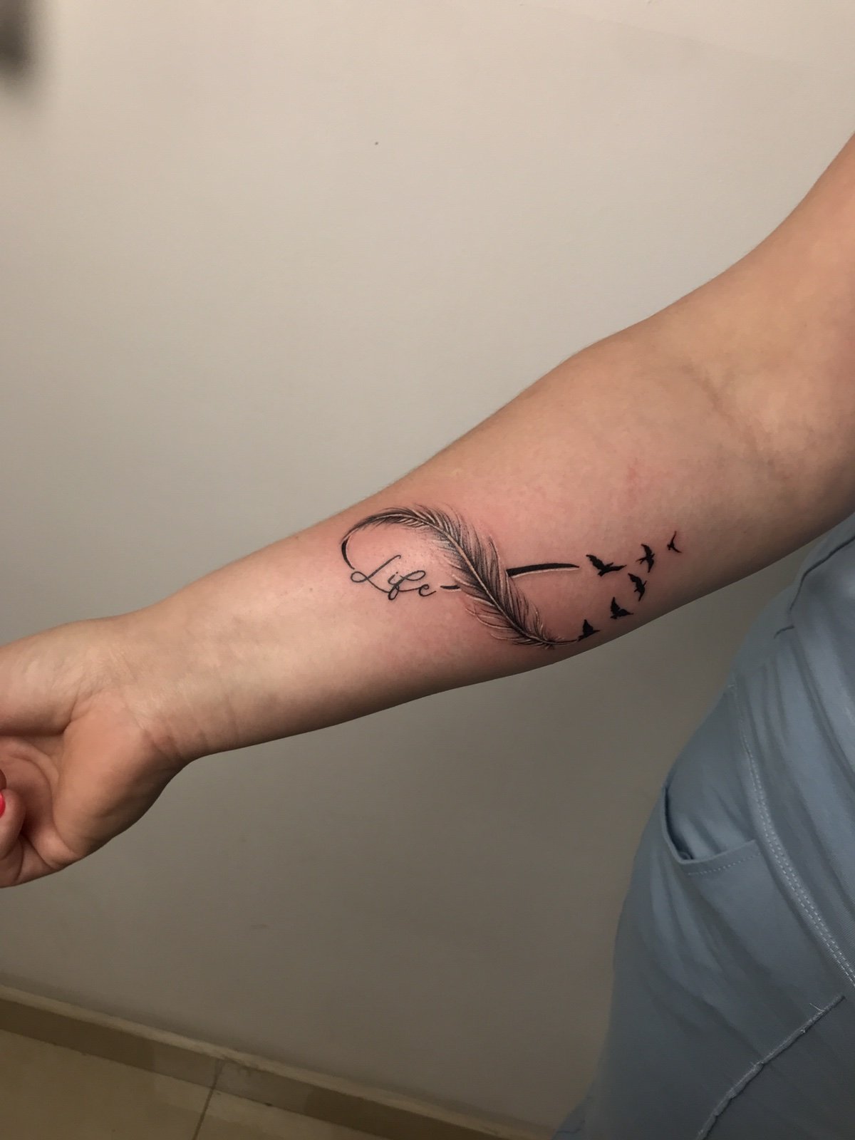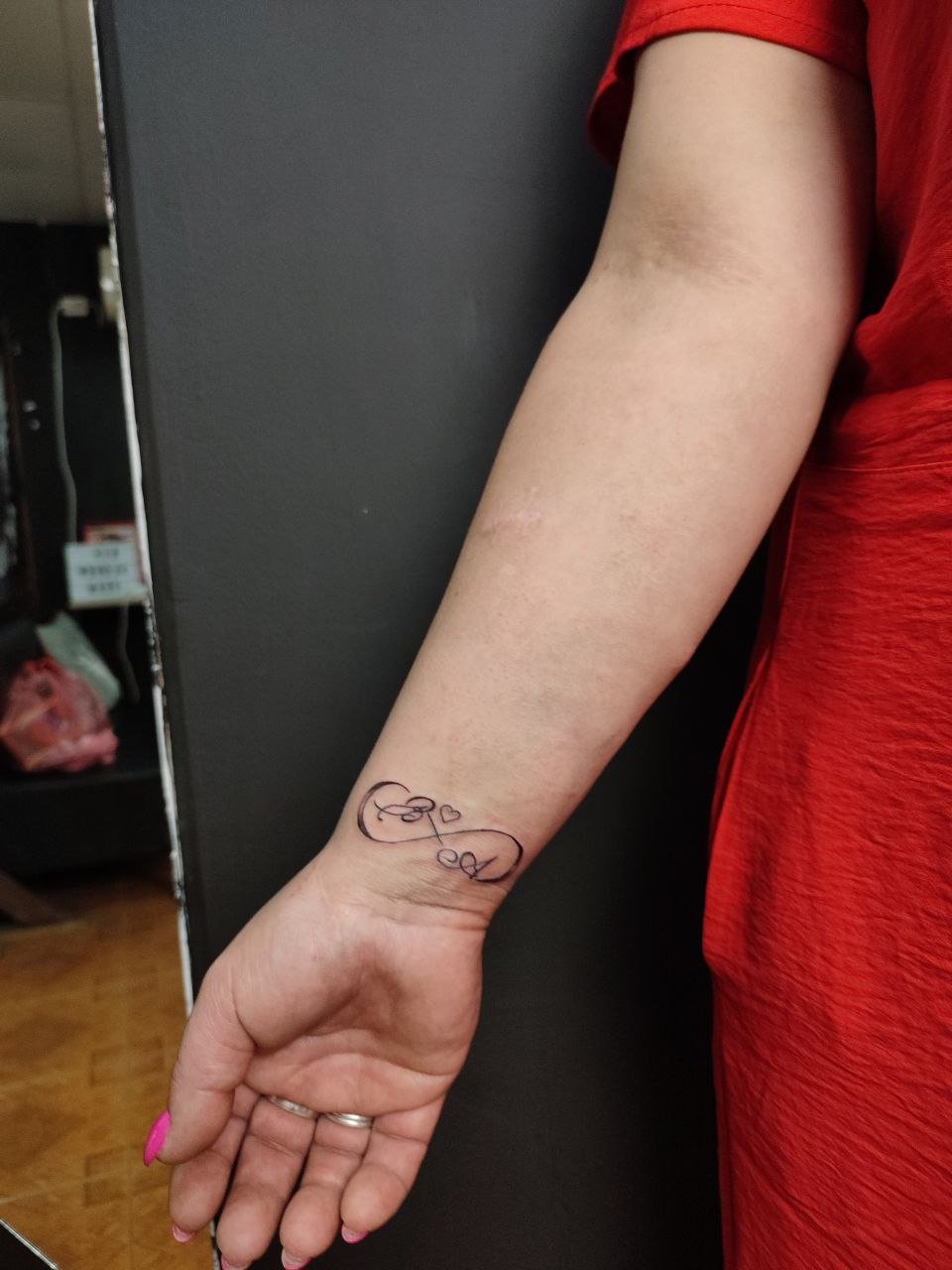 - Încheietura mâinii – este cel mai popular loc pentru tatuajul semnului infinitului, deoarece permite tatuajului să fie constant vizibil, reamintindu-ți de semnificația sa. Un tatuaj pe încheietura mâinii poate servi ca un memento zilnic al obiectivelor, visurilor sau persoanelor dragi, făcând simbolul deosebit de personal și simbolic.