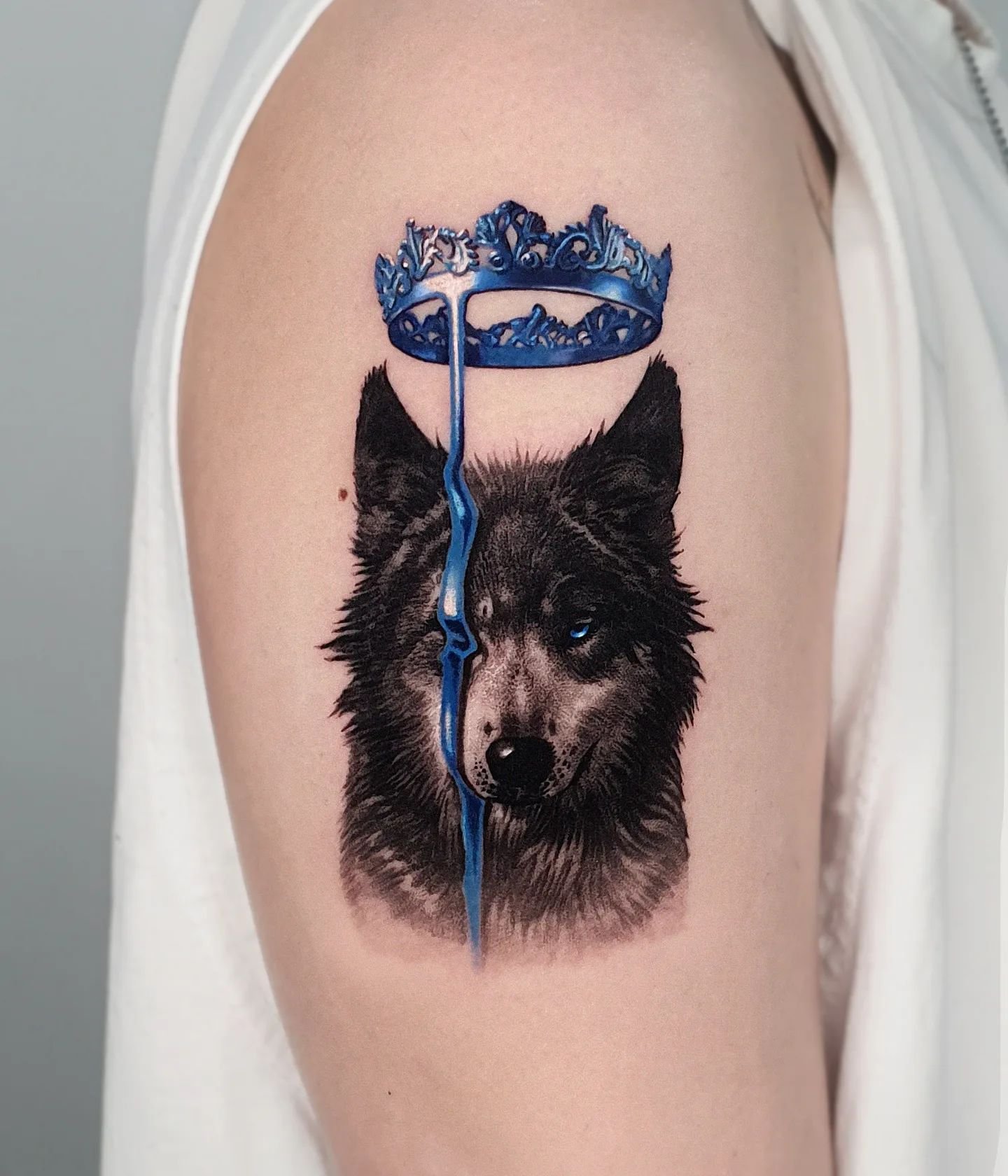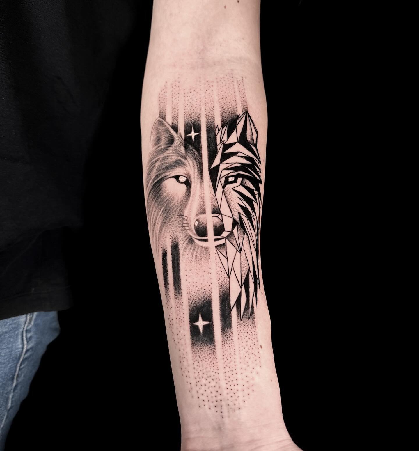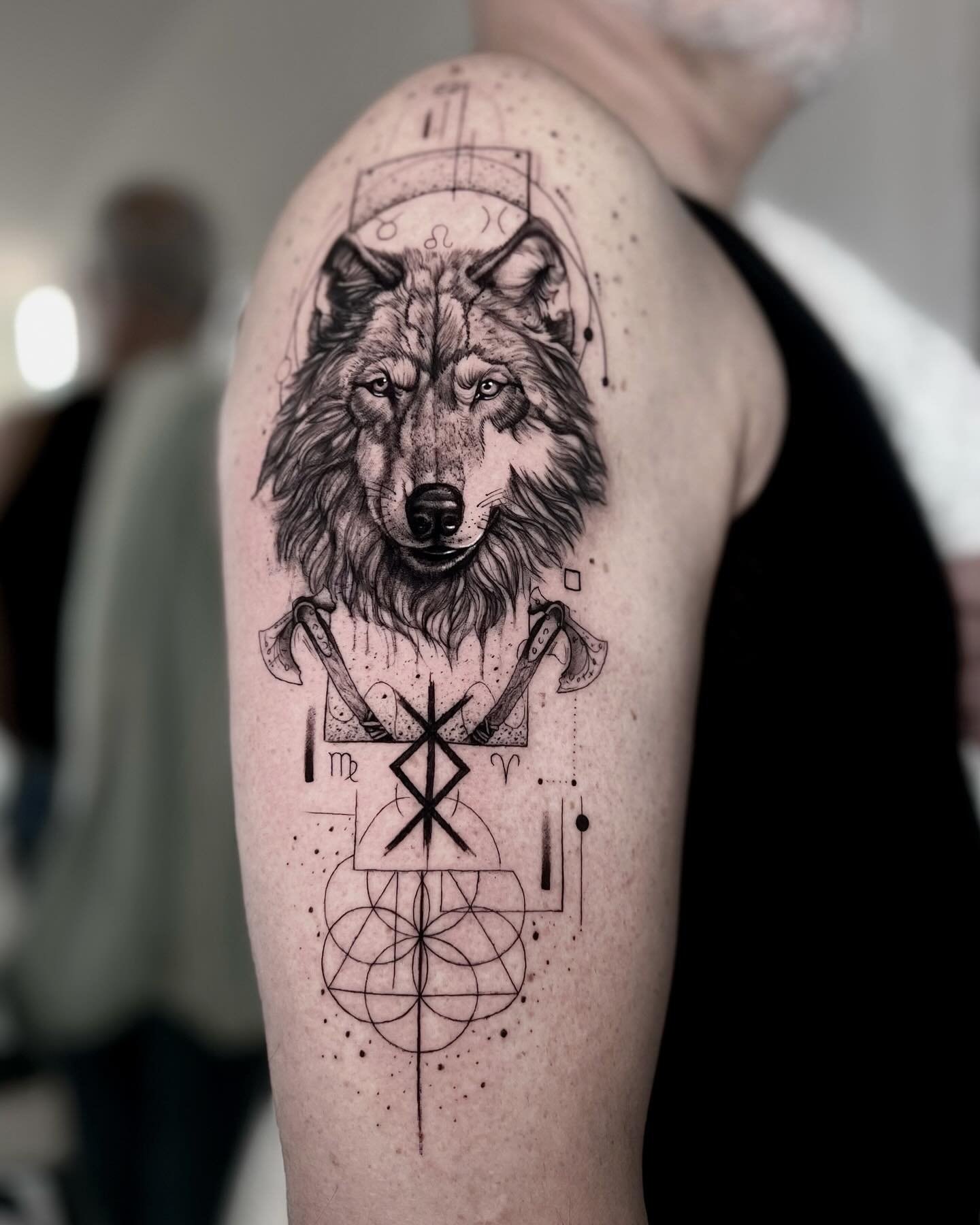 Lupul, fiind un simbol puternic în multe culturi, reprezintă forța, protecția, libertatea și legăturile familiale, făcând astfel tatuajul semnificativ și personal important.