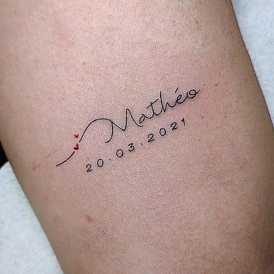 - Tatuajele minimaliste cu nume atrag prin eleganța și simplitatea lor. Adesea sunt realizate cu un font mic și sunt plasate pe încheietură, deget sau în spatele urechii. Această variantă este ideală pentru cei care preferă un design discret, dar semnificativ.