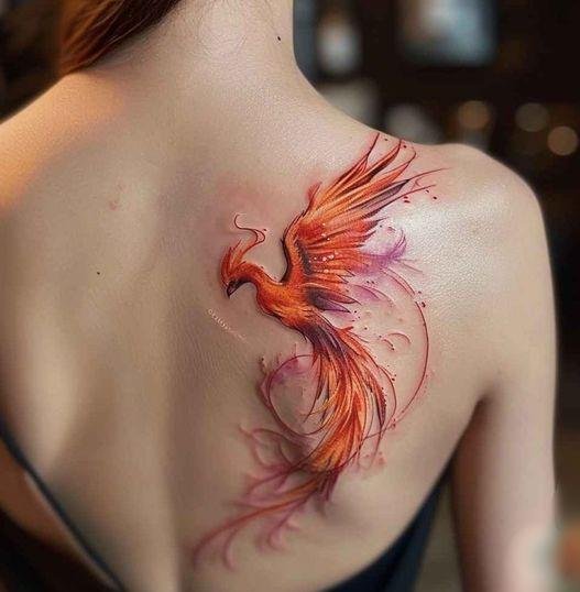 Pentru femei, tatuajul phoenix poate fi realizat în stiluri mai elegante și rafinate.
