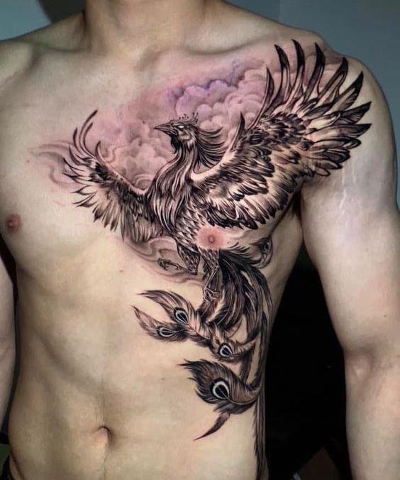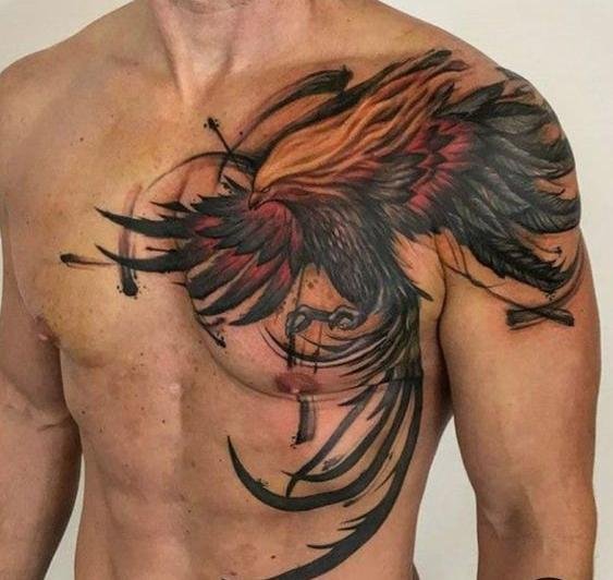 Pentru bărbați, tatuajul phoenix poate fi realizat în stiluri mai masive și masculine.