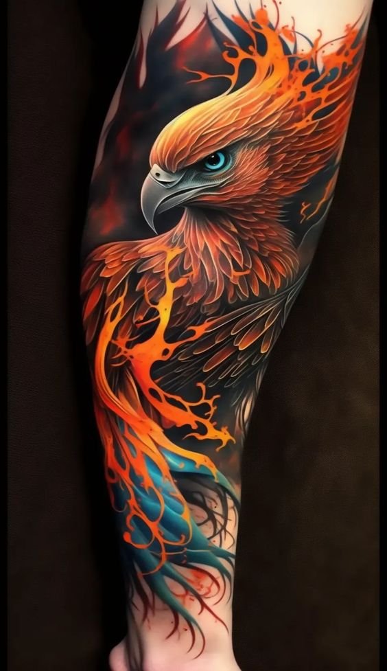 Gamba este un loc excelent pentru un tatuaj phoenix, mai ales dacă doriți să creați o imagine dinamică și puternică. - Talie