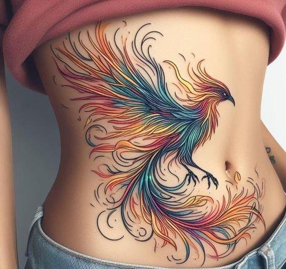 Phoenixul pe talie este o alegere pentru cei care doresc o imagine semnificativă, care poate fi ușor ascunsă sub haine.