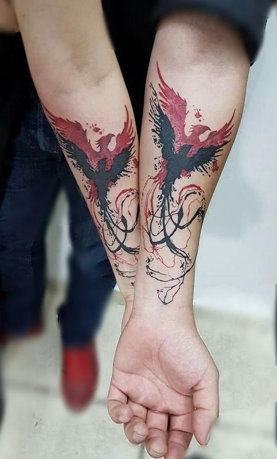 Spatele oferă o suprafață mare pentru tatuaje detaliate și de mari dimensiuni. Este locul ideal pentru imaginea unui phoenix în zbor sau pentru o întreagă compoziție, incluzând focul și cenușa. - Braț