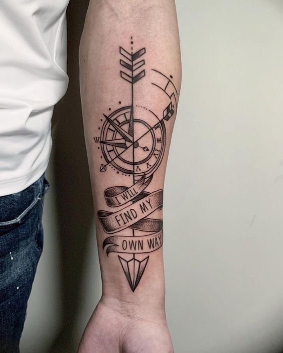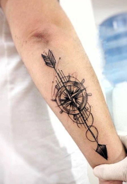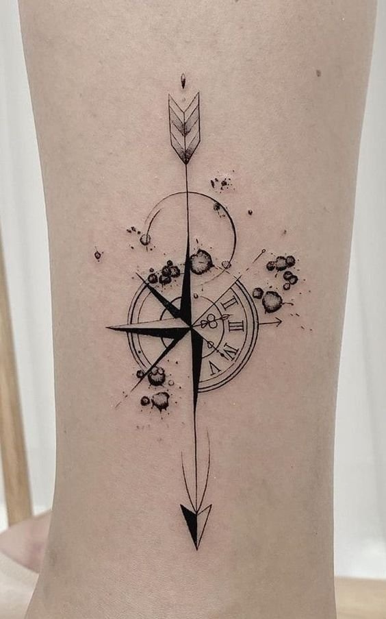 - Săgeată și busolă. Combinarea unei săgeți cu o busolă într-un tatuaj simbolizează adesea căutarea direcției și a drumului personal în viață. Busola indică direcția, iar săgeata reprezintă mișcarea în acea direcție, subliniind aspirația către un scop și dezvoltarea personală.