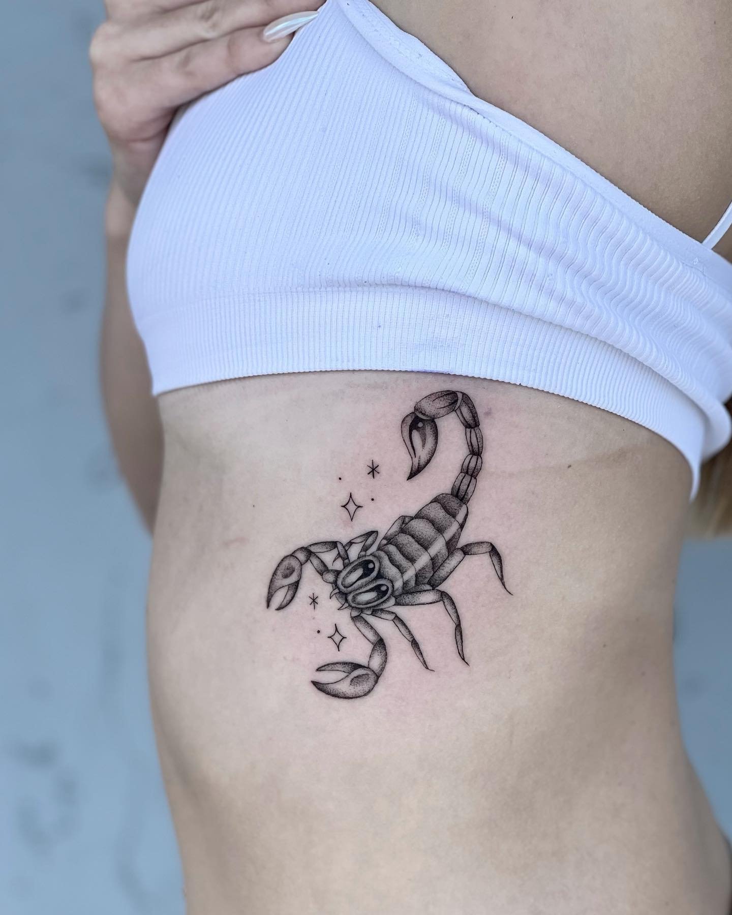 - Semnificație: Pentru mulți oameni, tatuajul cu scorpion poartă un profund sens personal, legat de o anumită perioadă din viață, experiențe sau realizări. Acest simbol poate aminti despre obstacolele depășite, decizii importante de viață sau poate fi un omagiu adus cuiva drag. Scorpionul pe corp este ca o carte care păstrează în sine povești, momente semnificative și lecțiile învățate din viață.