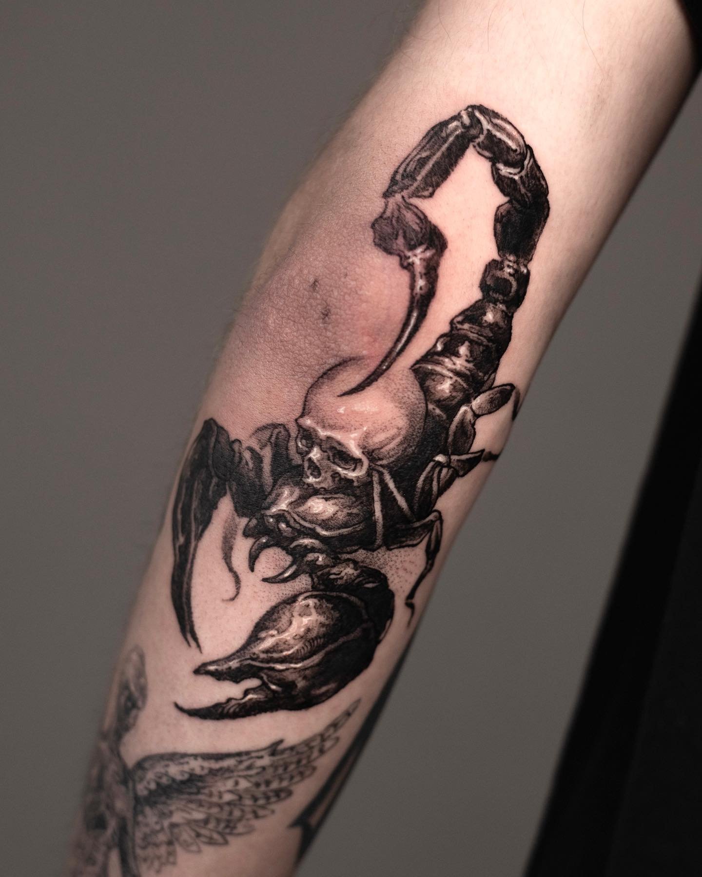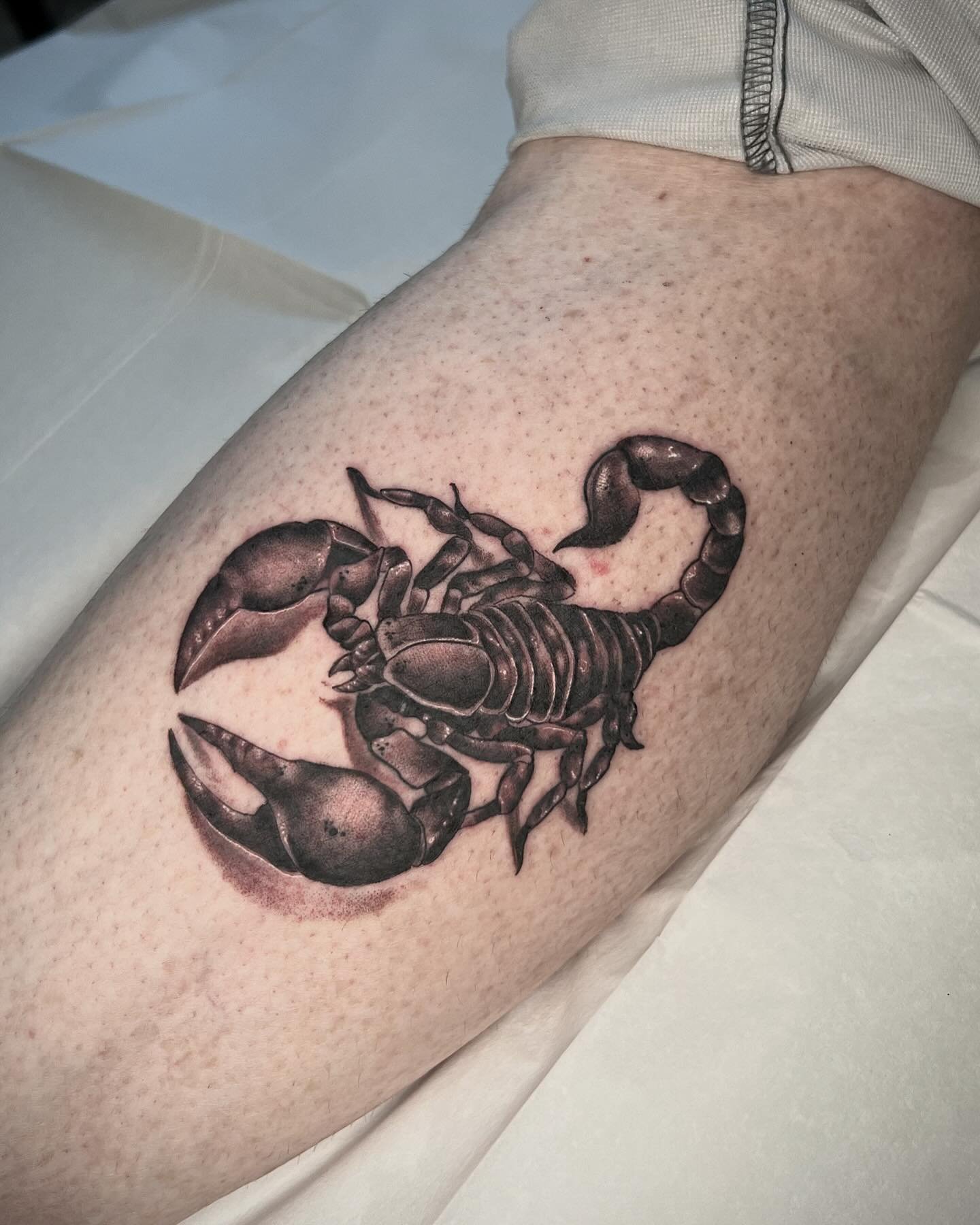 - Realism: Reprezentări detaliate și picturale ale scorpionilor, care prind viață pe piele cu o acuratețe incredibilă. Tatuajele realiste necesită măiestrie și atenție la cele mai mici detalii, creând efectul prezenței unui scorpion real. Acest stil evidențiază frumusețea și unicitatea obiectului, permițând observatorului să simtă puterea și adâncimea simbolismului asociat cu această ființă misterioasă.