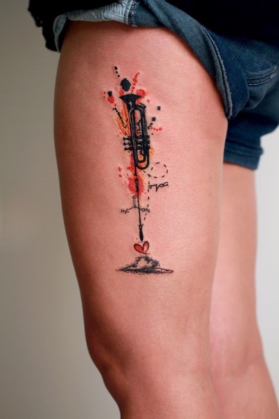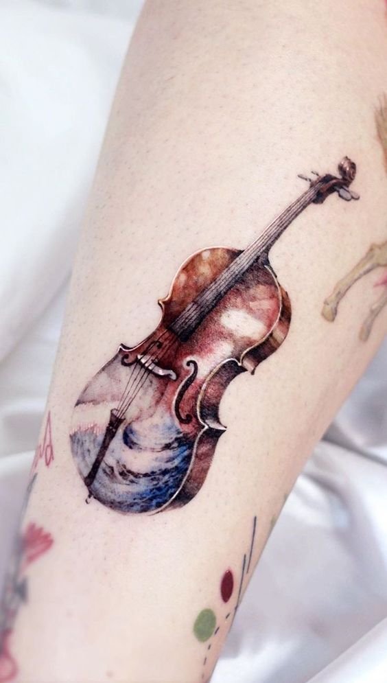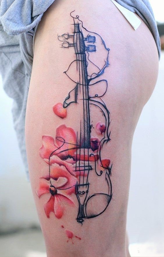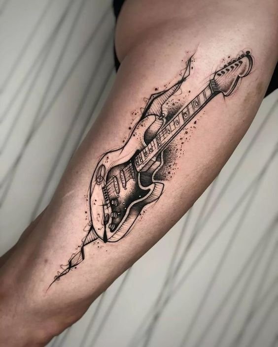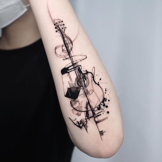 - Instrumente muzicale: Chitarele, viorile, piane, tobe – orice instrument care ocupă un loc special în inima ta poate fi o alegere excelentă pentru un tatuaj.