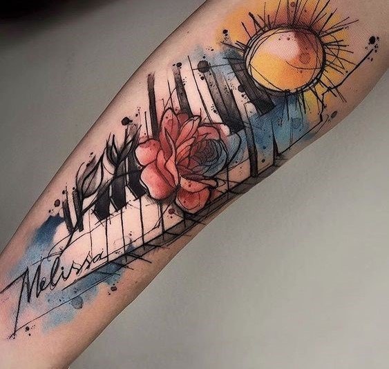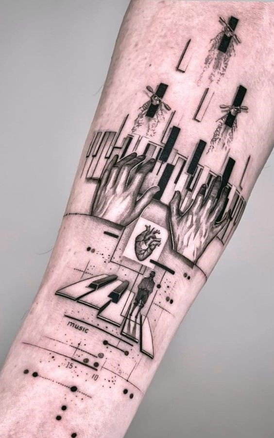 - Antebrațul: Aici arată grozav notele muzicale, citatele din cântece sau imaginile instrumentelor muzicale.