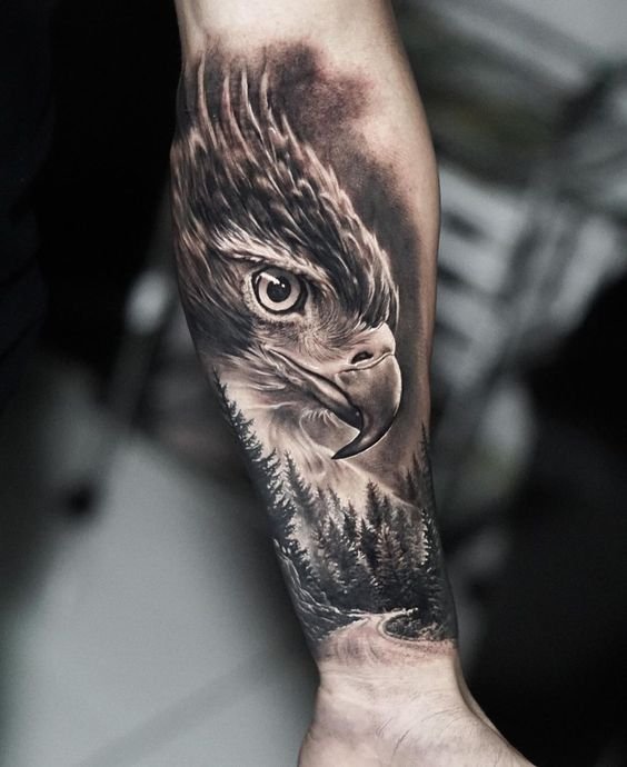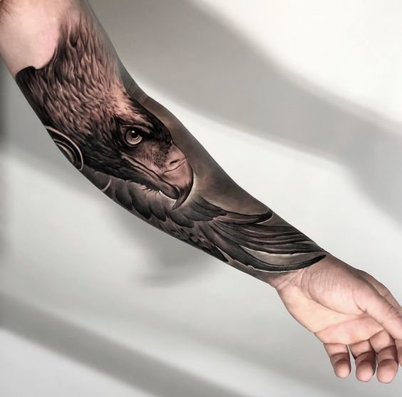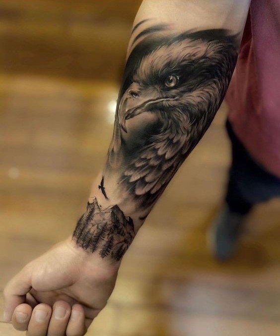 - Antebraț: Un tatuaj de dimensiuni medii pe antebraț este o alegere excelentă pentru cei care doresc ca vulturul să fie mereu vizibil, demonstrând forța și determinarea ta.