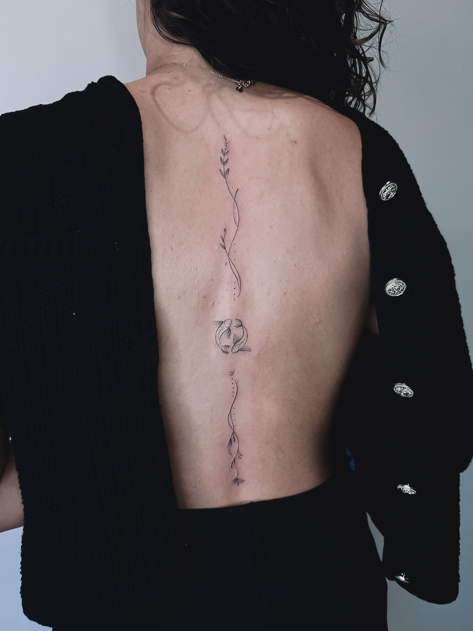 #Tatuaj #Plante #Tatuaje pentru spate #Leafs #Fish Fish #Linework